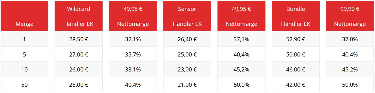 Händler Mengenstaffeltabelle: